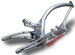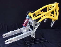 A motorcycle frame includes the head tube that holds the front fork and allows it to pivot. Some motorcycles include the engine as a load-bearing, stressed member. The rear suspension is an integral component in the design. Traditionally frames have been steel, but titanium, aluminium, magnesium, and carbon-fibre, along with composites of these materials, have been used.